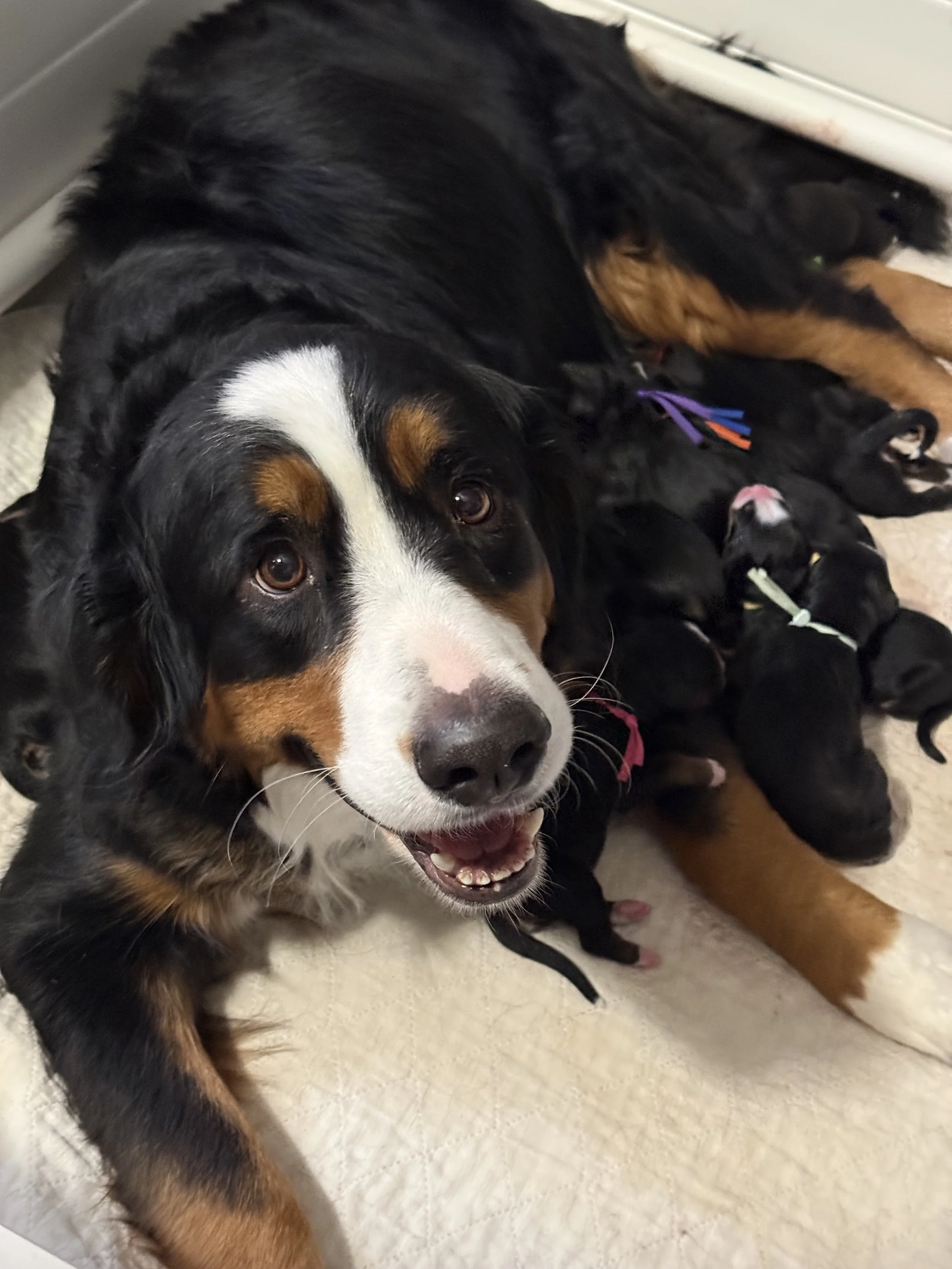 We welcomed a truly amazing litter of a dozen Bernese Mountain Dogs from Ember on January 26th. The newest collection of puppies is a mix of 5 males and 7 females. “She’s Got a Sweet Tooth” is our theme and we celebrate the candy and sweets that fuel our breeding operation - perfect timing for Valentine’s Day!